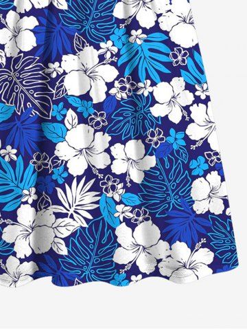 Kid's Flower Palm Leaf Print Hawaii Dress - Blue - 150
