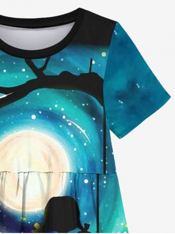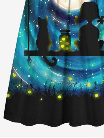 Kid's Galaxy Moon Cat Girl Swing Firefly Glitter 3D Print Dress - Black - 110