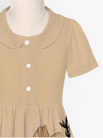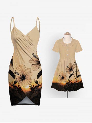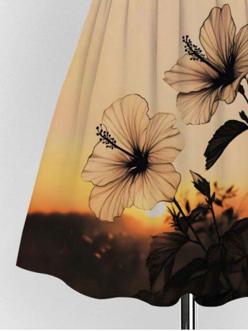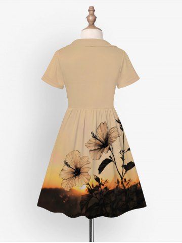 Kid's Hibiscus Flower Sunset Print Hawaii Dress - Tan - 110