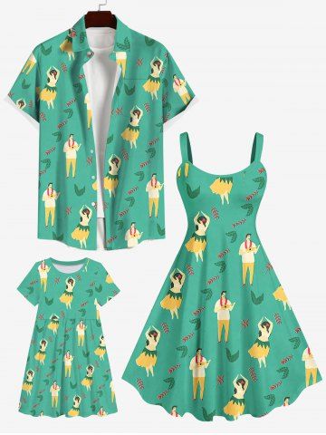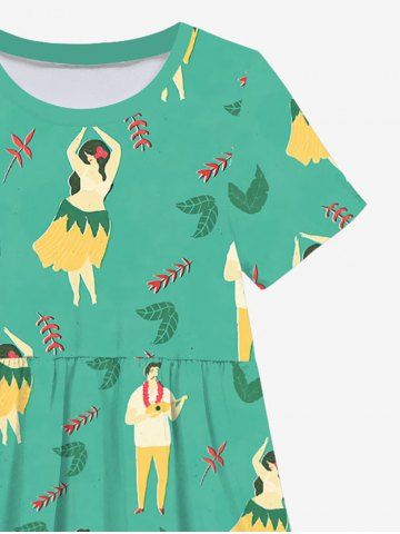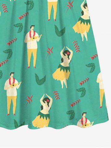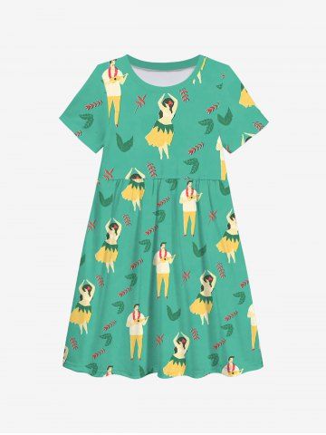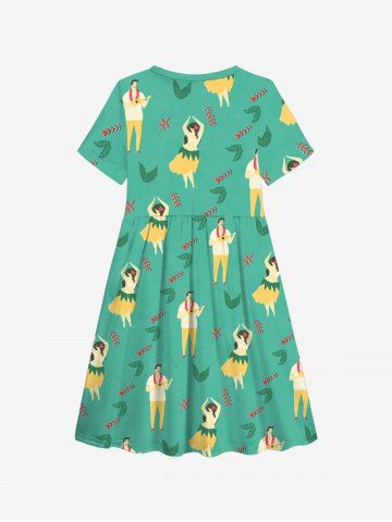 Kid's Hula Dancer Leaf Printed Hawaii Dress - Green - 140