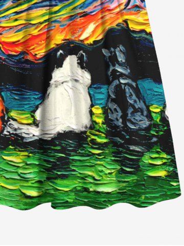 Dresses & Jumpsuits > Kid's Oil Painting Swirls Dog Cat Grassland Mountains Print Dress