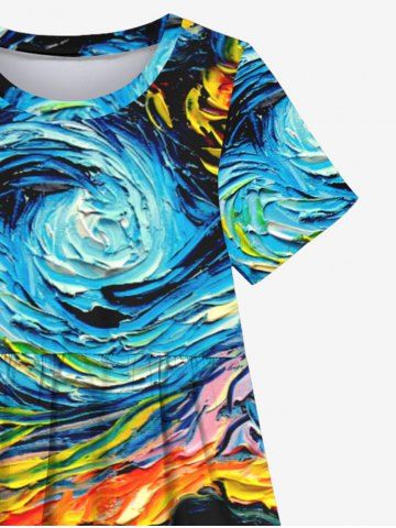 Kid's Oil Painting Swirls Dog Cat Grassland Mountains Print Dress - Multi-a - 150