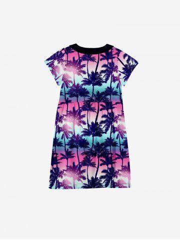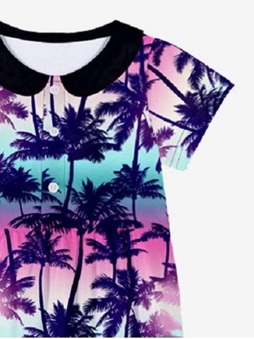 Kid's Ombre Aurora Galaxy Coconut Tree Print Hawaii Button Dress - Multi-a - 150