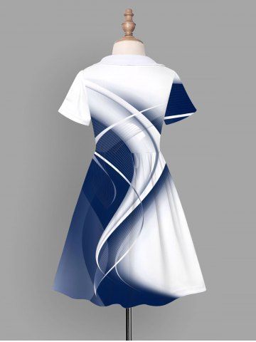 Kid's Ombre Curve Print Hawaii Dress - Deep Blue - 100