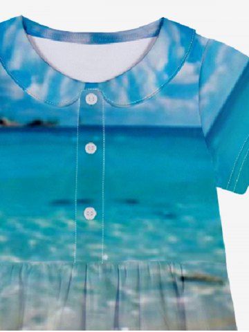 Kid's Shell Starfish Ombre Sea Print Hawaii Button Dress - Multi-a - 110