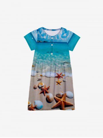 Dresses & Jumpsuits > Kid's Shell Starfish Ombre Sea Print Hawaii Button Dress