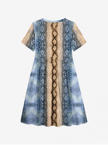 Kid's Snake Pattern Geometric Textured Print Hawaii A Line Dress - Blue - 110