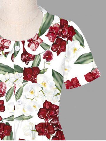 Kid's Tropical Leaf Flower Print Hawaii Dress - White - 110