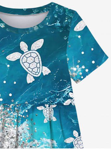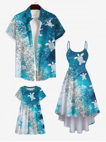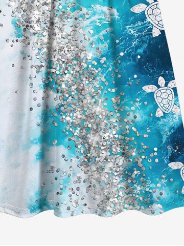 Turtle Sandstone Ombre Sea Waves Print Plus Size Matching Hawaii Beach Outfit For Family