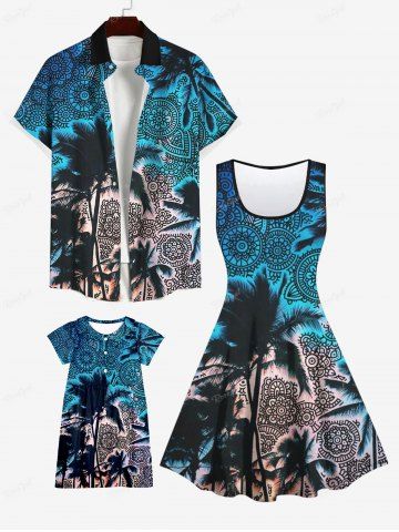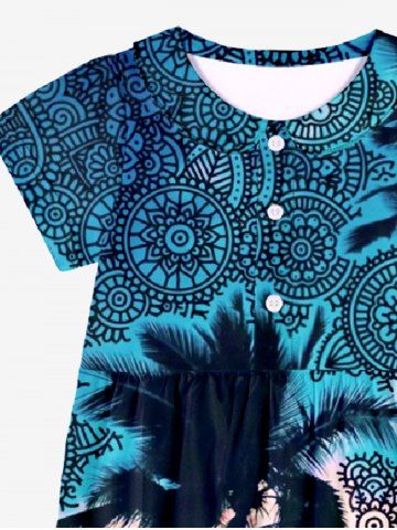 Dresses & Jumpsuits > Kid's Vintage Floral Coconut Tree Circle Print Hawaii Button Dress