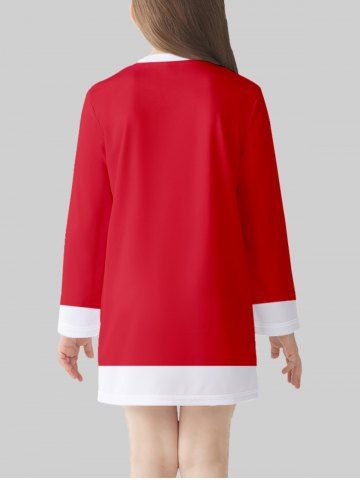 Kids Christmas 3D Printed Long Sleeve Tee Dress - Red - 100