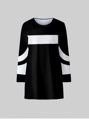 Kids Colorblock Long Sleeve Tee Dress - Black - 140