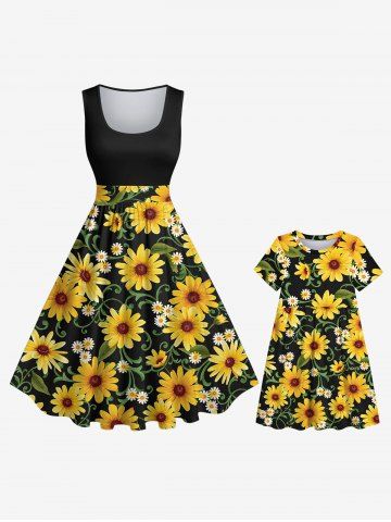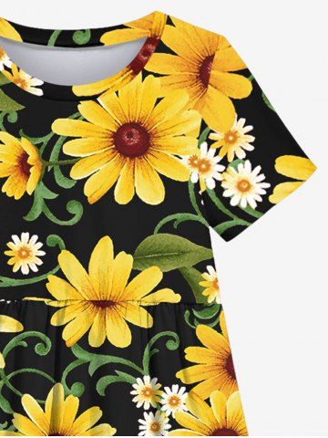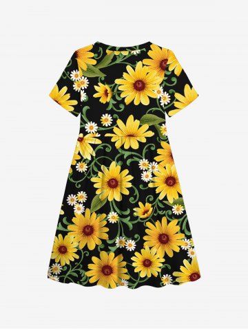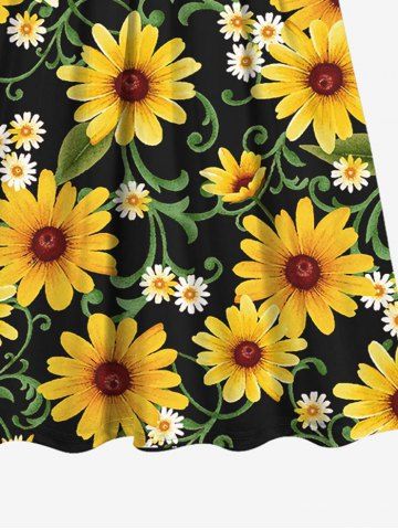 Plus Size Daisy Chrysanthemum Flower Print Hawaii Dress - Black - 110