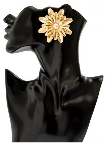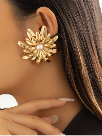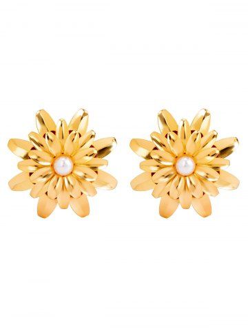 Daisy Flower 3D Faux Pearl Stud Earrings - Golden