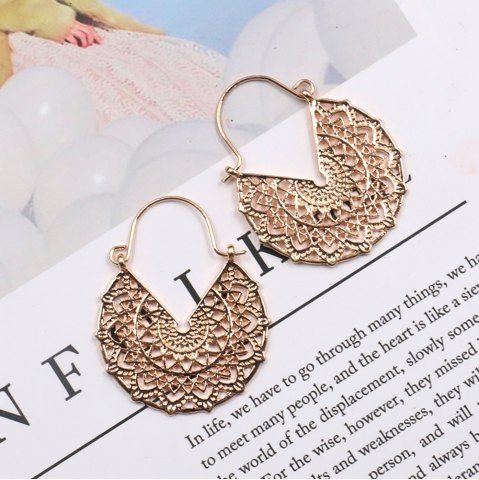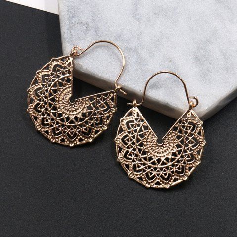 Fashion Metal Earrings for Women Statement Gold Hollow Geometric Dangle Earrings - Gold - 1 Pair