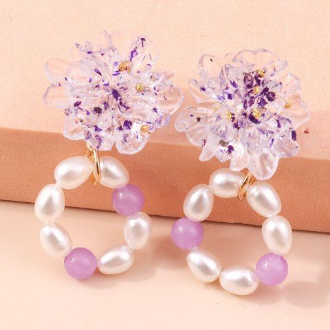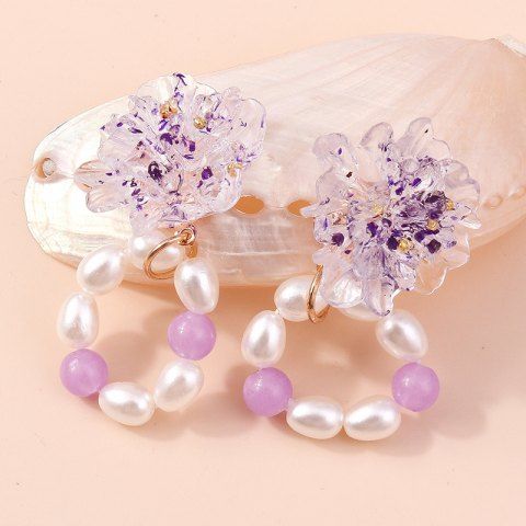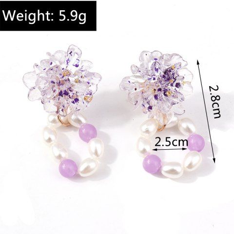 Flower Luminous Faux Pearl Dangle Earrings - Purple