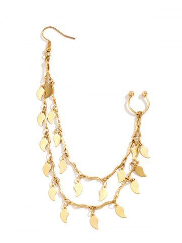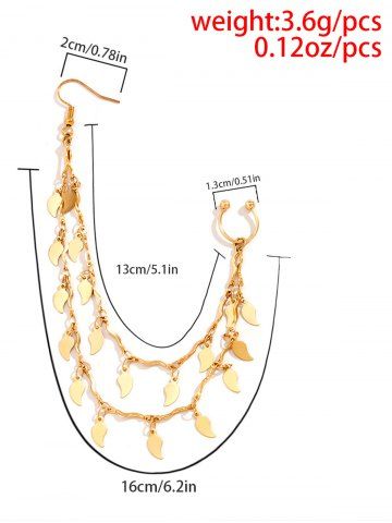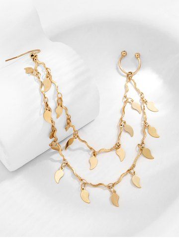 Leaf Charm Double Layer Nose Ring Stud Earrings Chain - Golden