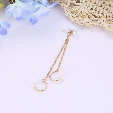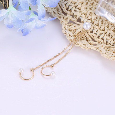 Single Faux Pearl Tassel Chain Ear Cuff Earring - Golden