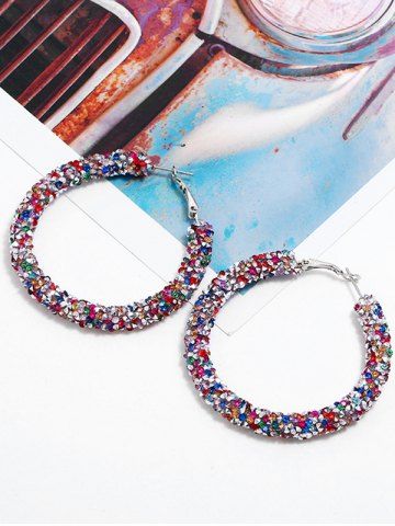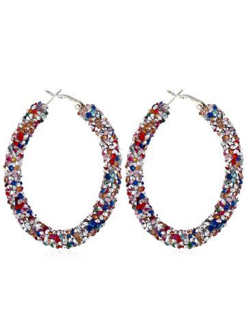 Unique Colored Rhinestone Hoop Earrings - Multi