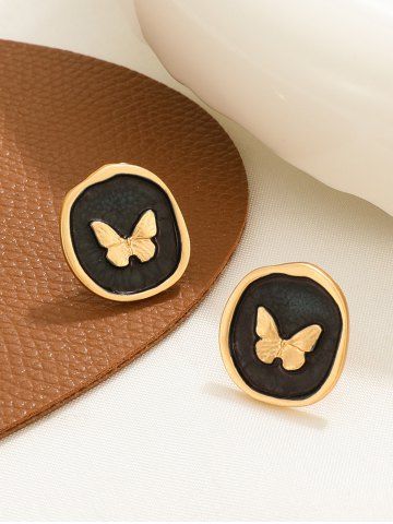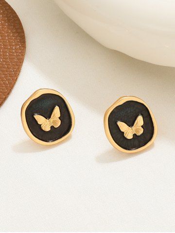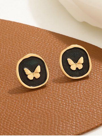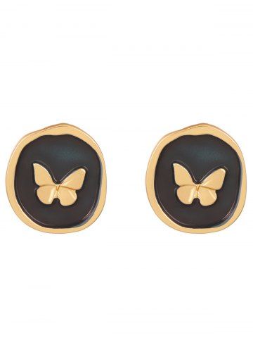 Vintage Butterfly Emboss Stud Earrings - Black