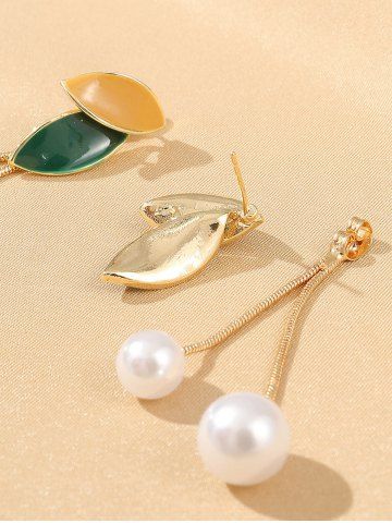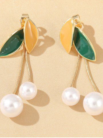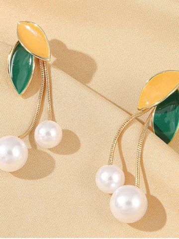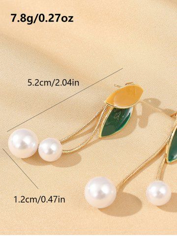 Vintage Leaf Faux Pearl Drop Earrings - Green