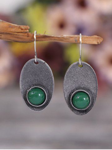 Vintage Oval Emerald Drop Earrings - Green