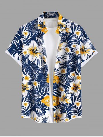 Tropical Leaf Hibiscus Flower Print Plus Size Matching Hawaii Beach Outfit For Couples