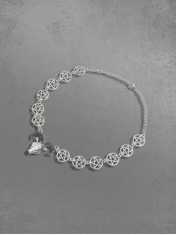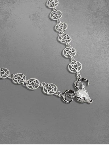 Goat Pentagram Shaped Pendant Necklace - Silver
