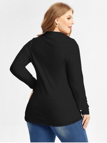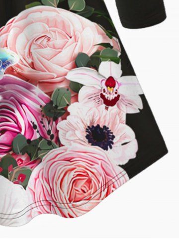 Plus Size Butterfly Flower Printed Long Sleeves Shirt - Black - S | Us 8
