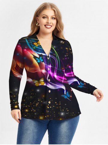 Graphic Blouses > Plus Size Butterfly Light Beam Print Sparkly Glitter Shirt