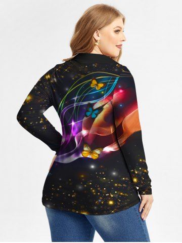 Graphic Blouses > Plus Size Butterfly Light Beam Print Sparkly Glitter Shirt