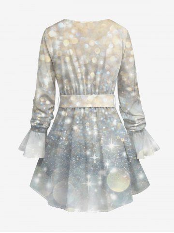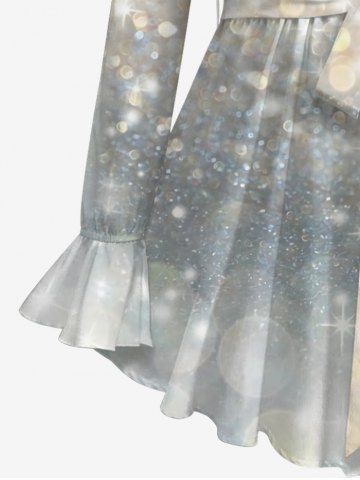 Plus Size Circle Glitter Sparkling Sequin Ombre 3D Print Surplice Poet Sleeve Blouse With Belt - Light Gray - 1x