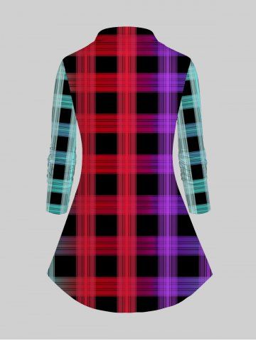 Graphic Blouses > Plus Size Colorful Checked Button Up Shirt