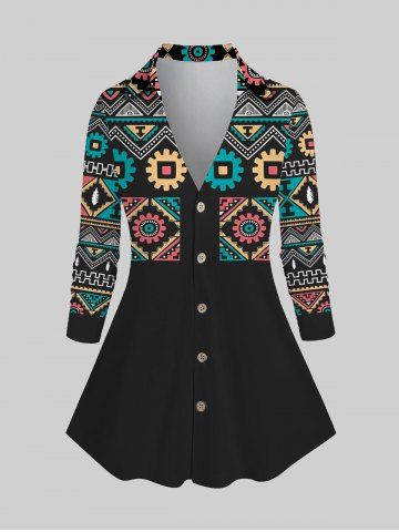 g*****r4Ethnic Printed V Neck Button Up Shirt and Skinny Leggings Plus Size OutfitColor: BLACKthe pants are bigger than expected, I thought they would fit better but overall it is a cute outfit..
