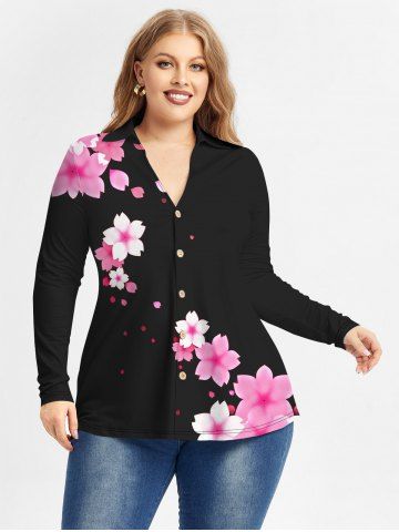 Plus Size Floral Print Shirt - Light Pink - 1x | Us 14-16