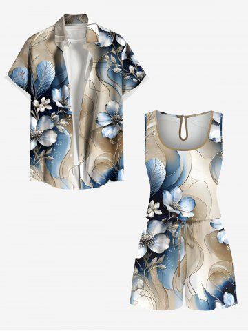Graphic Blouses > Plus Size Flower Leaf Ombre Print Hawaii Drawstring Pocket Romper