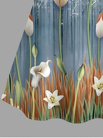 Graphic Blouses > Plus Size Flower Plant Print Hawaii Ruffles Cold Shoulder Blouse