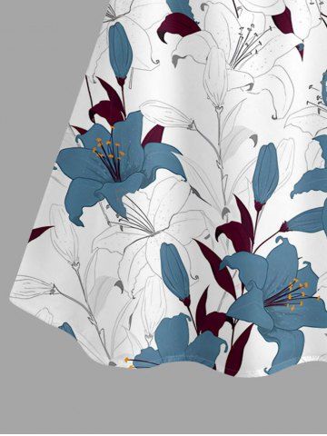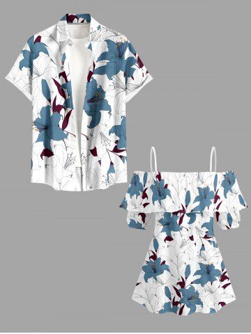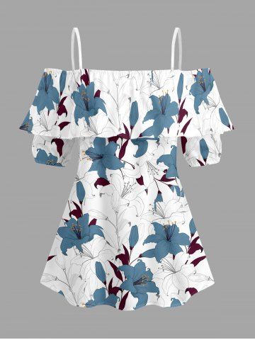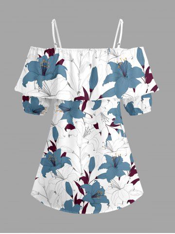 Plus Size Flowers Leaf Print Cold Shoulder Ruffles Cover Hawaii Blouse - White - M