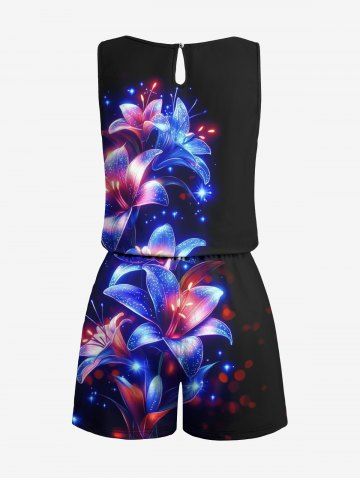 Graphic Blouses > Plus Size Flowers Star Glitter 3D Print Cinched Hawaii Romper
