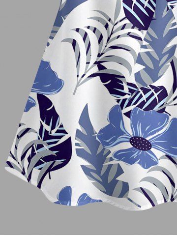 Plus Size Flowers Tropical Leaf Print Cold Shoulder Ruffles Cover Hawaii Blouse - Sky Blue - M