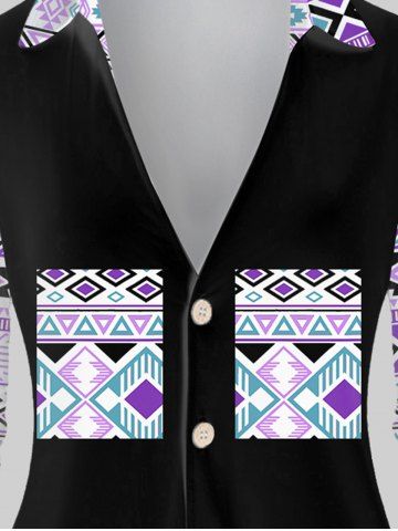Plus Size Geometric Printed Long Sleeves Plunging Shirt - Purple - 5x | Us 30-32