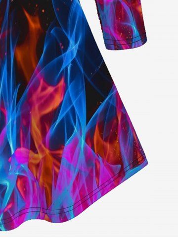 Plus Size Long Sleeves Flame Printed Plunging Shirt - Blue - 5x | Us 30-32
