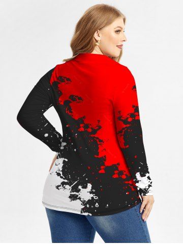 Plus Size Paint Splatter Colorblock Long Sleeves Shirt - Red - 1x | Us 14-16
