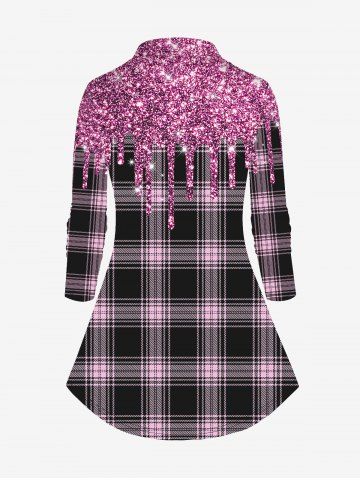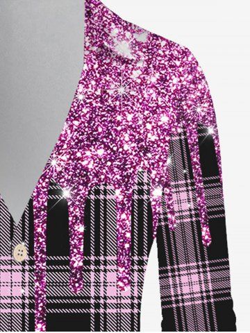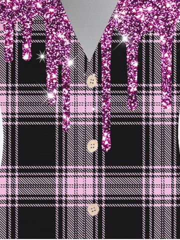 Graphic Blouses > Plus Size Plaid Sparkle Print Button Up Shirt