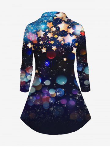 Graphic Blouses > Plus Size Sparkle Stars Print Button Up Shirt
