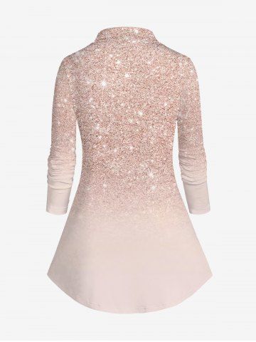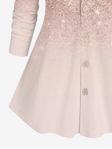 Plus Size Sparkling Sequin Glitter 3D Print Button Down Shirt - Apricot - M