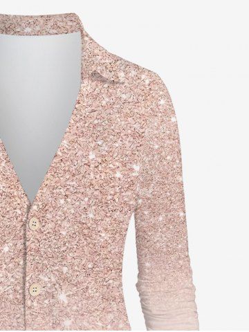 Plus Size Sparkling Sequin Glitter 3D Print Button Down Shirt - Apricot - 5x