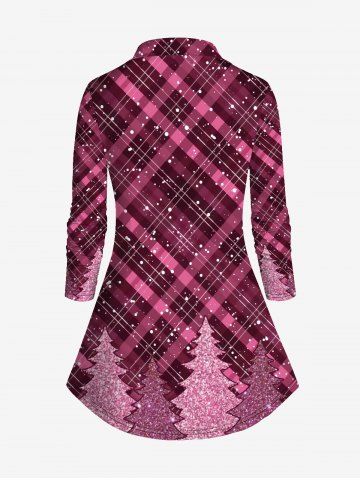 Plus Size Turn-down Collar Glitter Sparkling Christmas Tree Snowflake Plaid Print Buttons Long Sleeves Shirt - Light Pink - Xs
