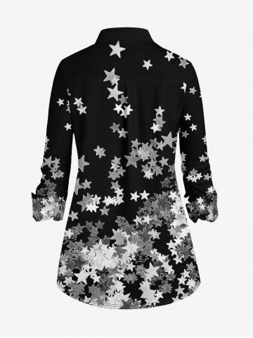 Plus Size Turn-down Collar Ombre Sequins Pentagram Printed Curved Hem Buttons Shirt - Black - 3x