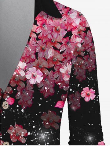 Plus Size V Neck Floral Print Button Up Shirt - Light Pink - 5x | Us 30-32